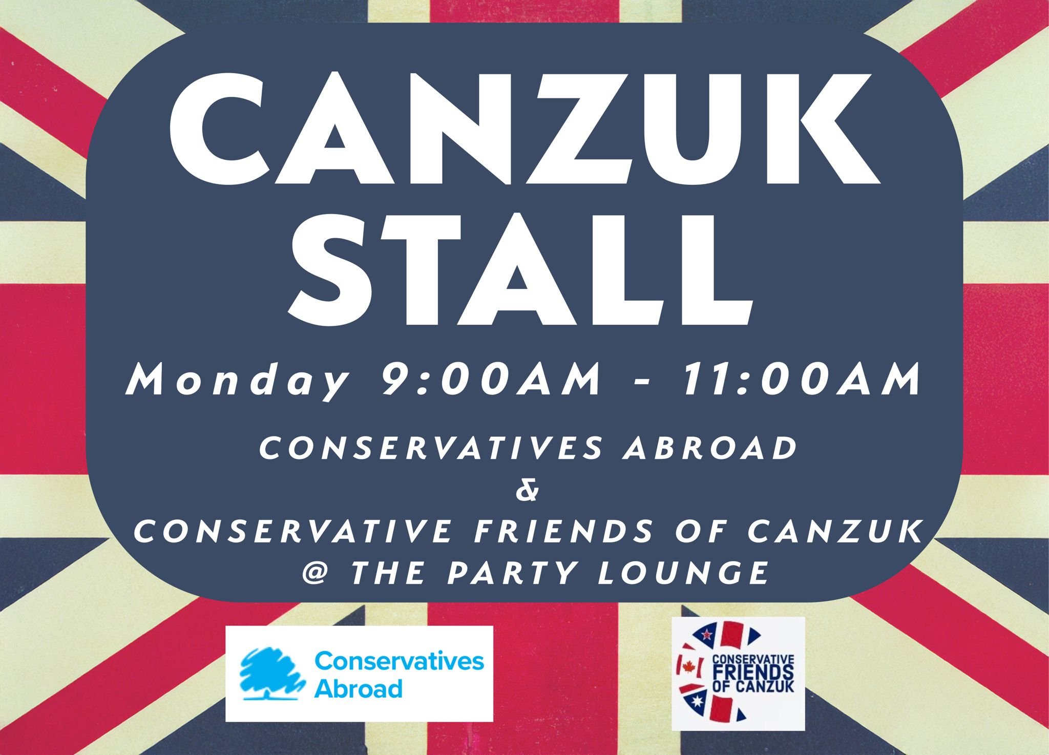 Back to All Events CANZUK stall at CPC25 Monday, October 6, 2025 9:00 AM 11:00 AM Google Calendar ICS We are delighted to be teaming up with our friends at the Conservatives Abroad to hold a stall in the Party Lounge on Monday 6th October between 09:00-11:00.We look forward to meeting you at the stall to say ‘hello’ and chat about CANZUK.